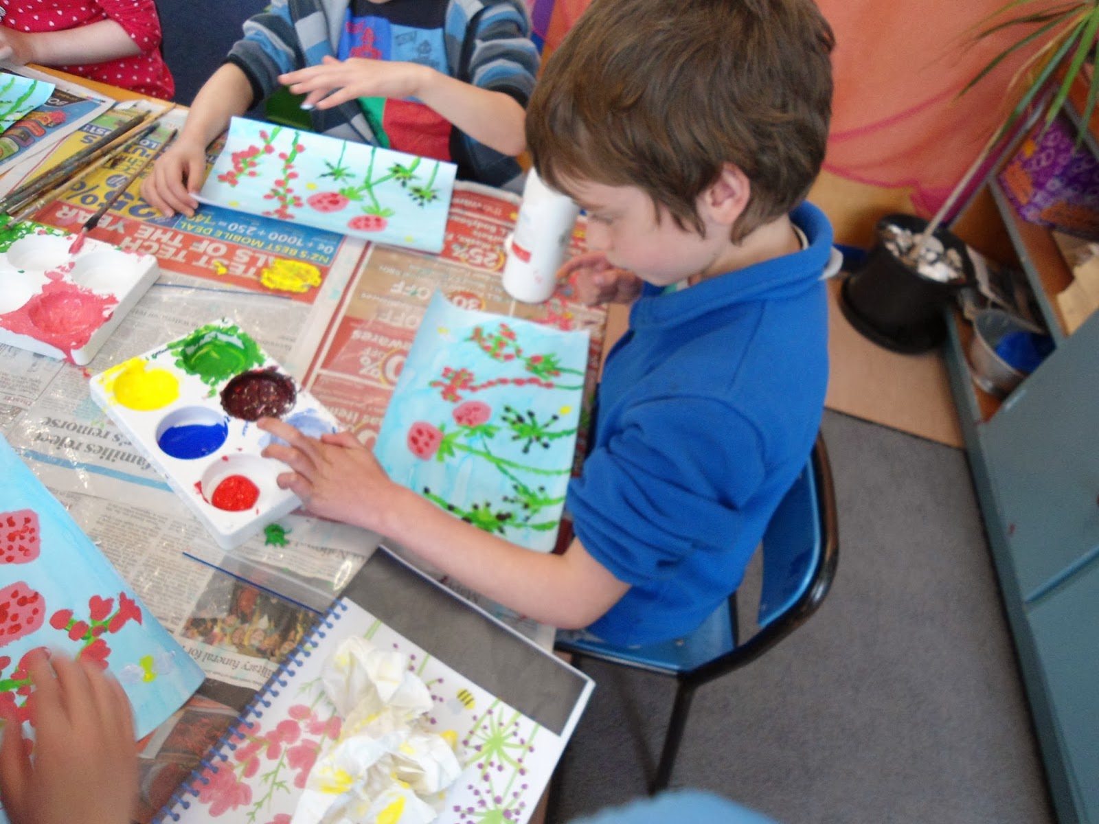First we had to design our cushions. Then we had to pencil the design onto the fabric. Next, we carefully painted the fabric. After that, we had to dye around the outside. Here are some photos of this stage of the process...
